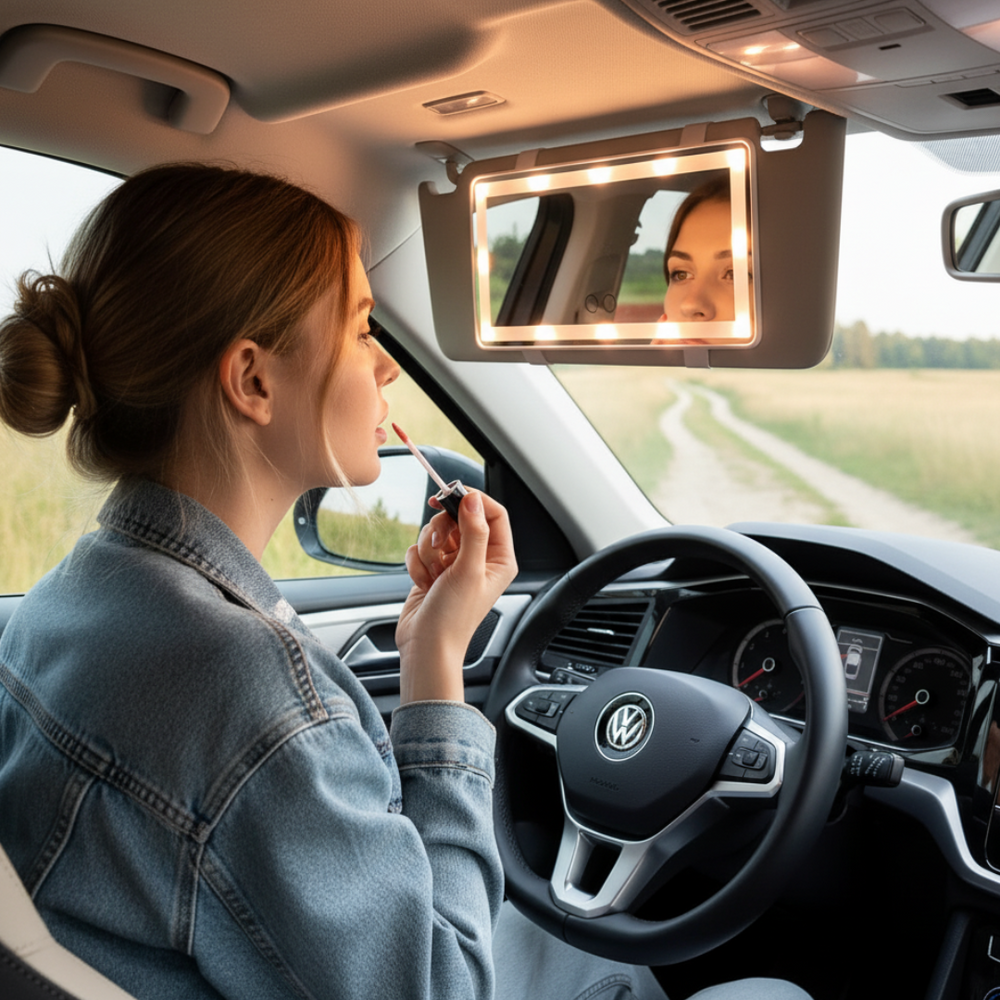 Забравете за бързането и напрежението, когато нямате къде да оправите грима си. С LED огледалото за гримиране в колата винаги имате перфектно осветление и достатъчно място, за да се подготвите бързо и лесно. То е компактно, практично и прави всяко пътуване по-удобно и елегантно.